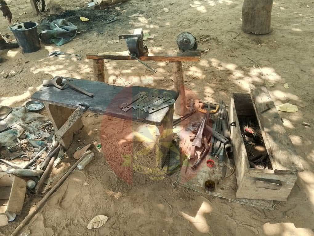 During the operation, the soldiers discovered a hidden location believed to be used for the production of locally made firearms. Several suspects reportedly fled when they sighted the patrol. One of them, identified as Baba Ogar, a 26-year-old male from Arusu village in Kokona Local Government Area, was arrested while attempting to escape by hiding on top of a tree.