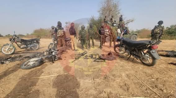 After neutralizing the attackers, troops conducted a thorough sweep of the area and recovered a significant cache of weapons and intelligence materials. Items recovered include “one OJC Gun, one PKT Gun, two AK-47 Rifles and four AK-47 Magazines,” as well as “one Bandolier of PKT Ammunition, several rounds of 12.7mm Ammunition, a camel bag containing ₦840,000, two mobile phones and five motorcycles.”