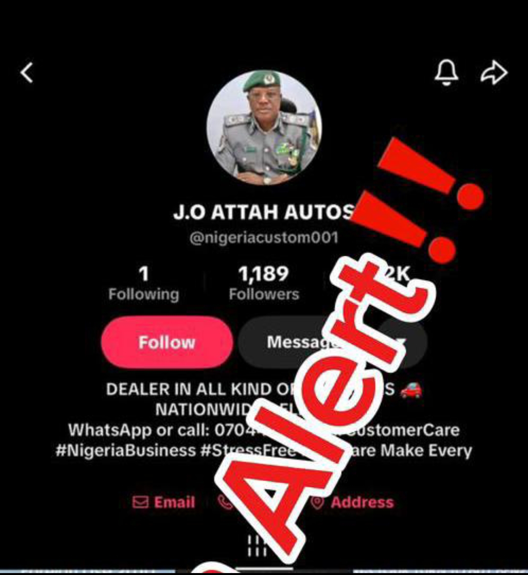 “The attention of the Nigeria Customs Service (NCS) has been drawn to a fraudulent social media account currently circulating online, falsely conducting vehicle auctions.”