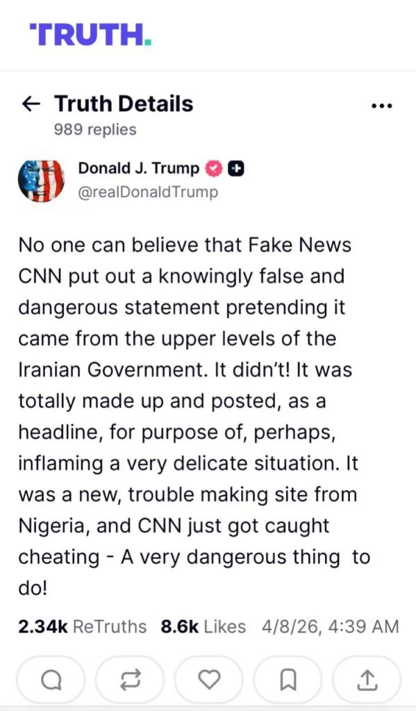 Trump rejected the claim and insisted that Iran’s official statement did not support such conclusions. He also called on CNN to withdraw the report and issue an apology.