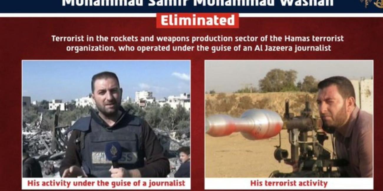 In a message posted on X, the Israel Defense Forces (IDF) announced that it had “eliminated” Muhammad Samir Muhammad Washah. The military alleged that he was “a Hamas terrorist operating under the guise of an Al Jazeera journalist.”