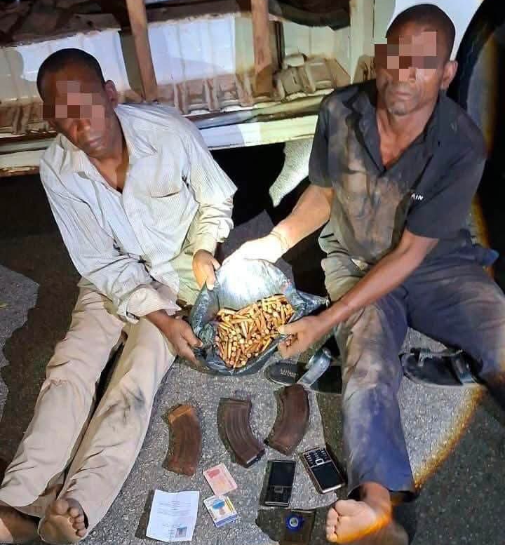 Troops recovered a sack containing 314 rounds of 7.62mm (Special) ammunition. They also found three AK-47 rifle magazines hidden behind the driver’s seat. Other items recovered included two mobile phones, a driver’s licence, a National Identification Number slip, and an identity card.